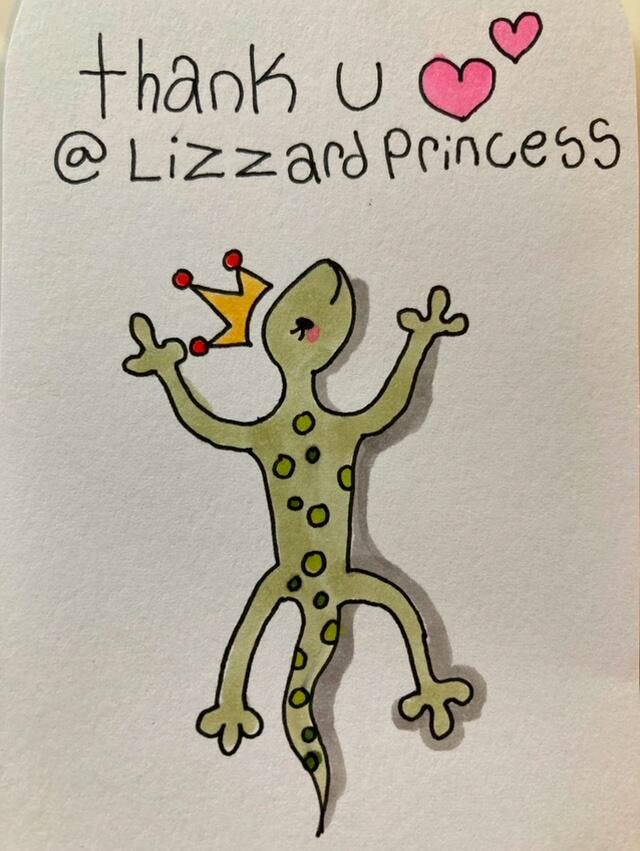 Sabrina Nelson 💕🦎💕I ABSOLUTELY LOVE THIS STORE💕🦎💕 the care and thoughtfulness of the Seller is awesome. Everything is always perfect. And as I continue to buy more wonderful items She learns more about my favorite things and I Love my extra gifts. Thank you so much for becoming a Seller here and I look forward to every day with happiness to find new super cute items. 💕🦎💕 Love, @Lizzardprincess and Sabrina