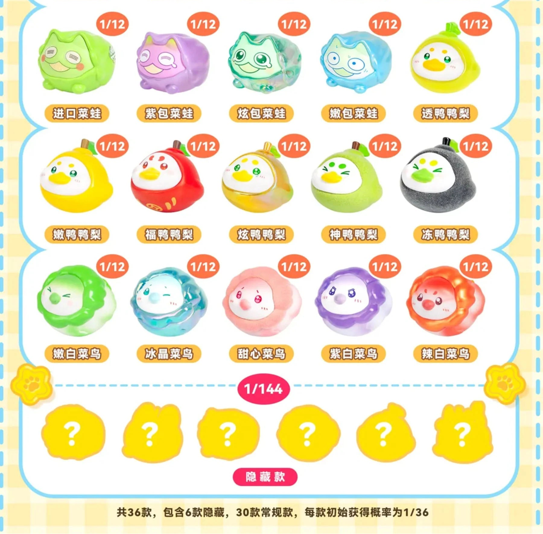 This series features 30 regular designs and 6 hidden designs (1:144 ratio).